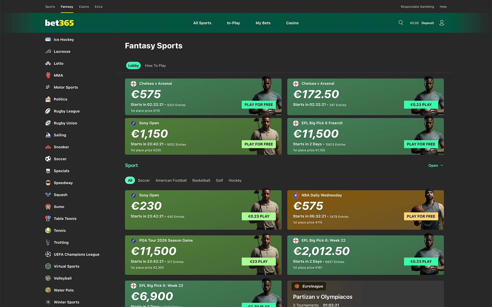 Perinteisen vedonlyönnin ohella bet365 erottuu edukseen Fantasy-puolellaan. Sivustolla voi rakentaa oman Dream Teamin ja osallistua fantasy-tyyppisiin kilpailuihin, joissa tavoitellaan oikean rahan palkintoja. Tämä tuo vedonlyöntiin vaihtoehtoisen, pitkäjänteisemmän pelimuodon, joka muistuttaa klassisia fantasy-urheilupelejä.