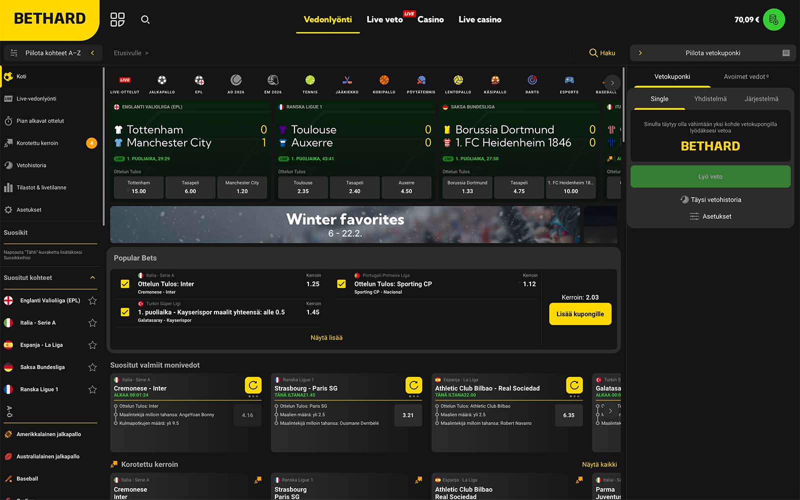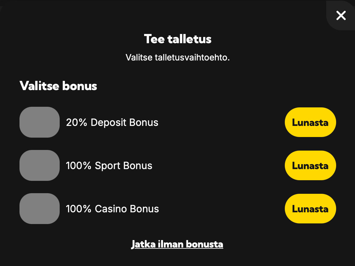 Ei. Bethard promokoodia ei tarvita minkään bonuksen käytössä, vaan bonukset lunastetaan moderniin tapaan kampanjasivulla tai talletuksen yhteydessä.
