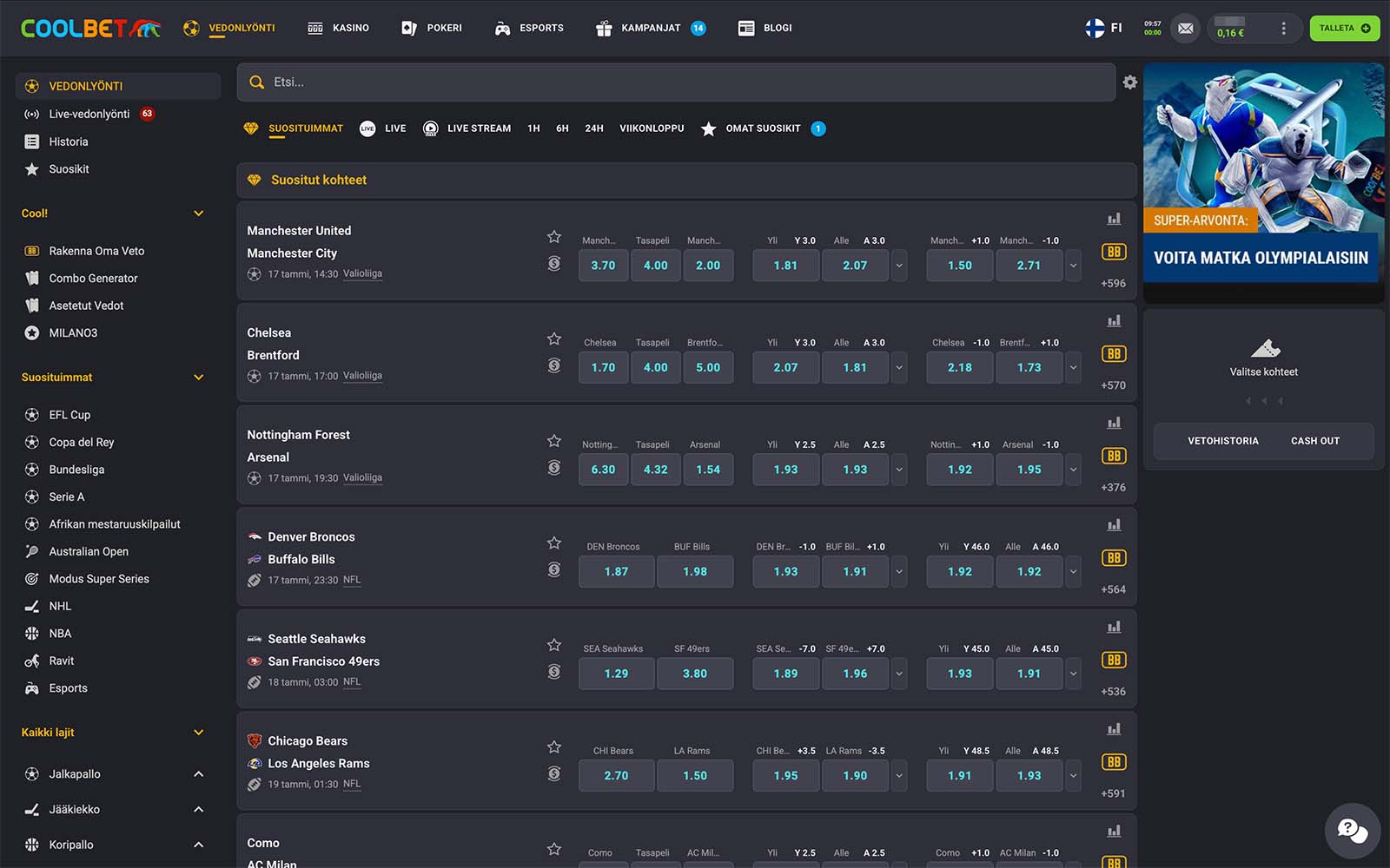 Coolbet erottuu edukseen aidosti suomalaismyönteisenä vedonlyöntisivustona. Suomi ei ole Coolbetille vain yksi markkina muiden joukossa, vaan selkeästi yksi sen tärkeimmistä kohdealueista. Tämä näkyy monella tasolla: sivusto on täysin suomenkielinen, asiakaspalvelua saa suomeksi ja sisältö on rakennettu vastaamaan suomalaisten pelaajien tottumuksia ja kiinnostuksen kohteita.