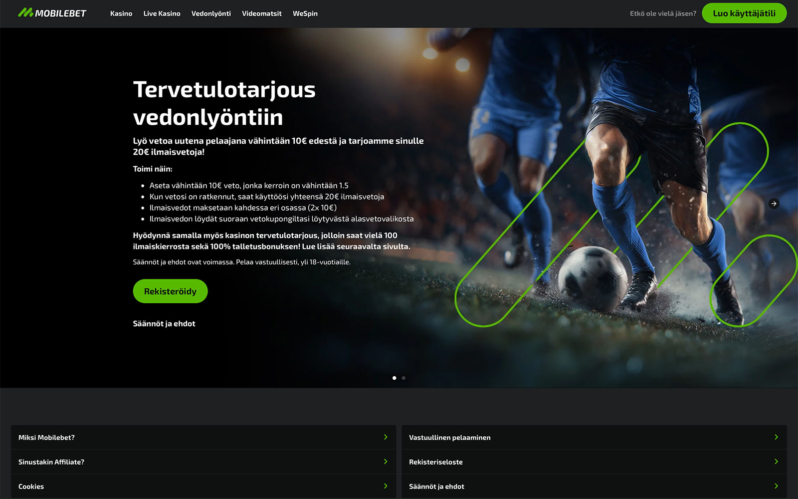 MobileBet suosii melko suoraviivaisia bonuksia, kuten vedonlyönnin tervetuliaisbonuksessa ilmaisvedot ovat kierrätysvapaita.