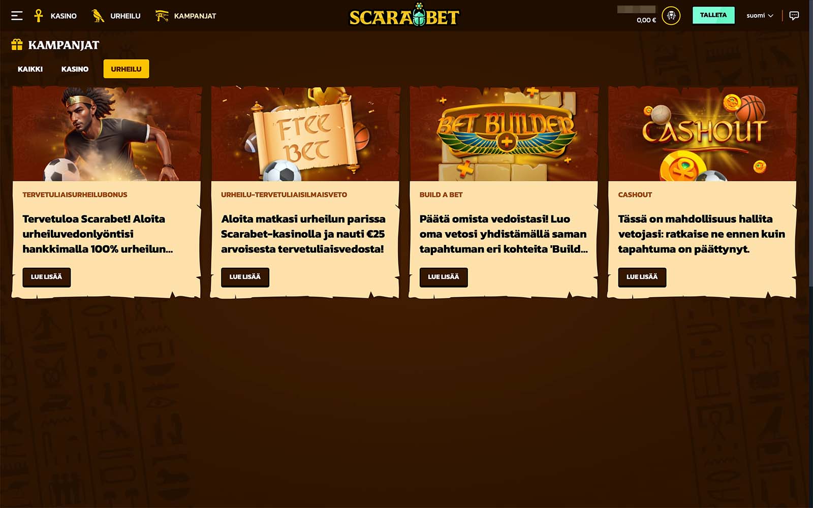 Syystä tai toisesta Egypti-aihenen kuvasto on ollut rahapeleihin liittyen suosittu teema. Tätä linjaa jatkaa Scarabet, joka on L.C.S Limitedin katalogin uusin lisäys keväältä 2024. Kyseinen verovapaa pelipaikka yhdistää kasinon vedonlyöntiin modernilla tavalla, vaikka sivuston aihepiiri sattuukin ajoittumaan tuonne parin tuhannen vuoden taakse!