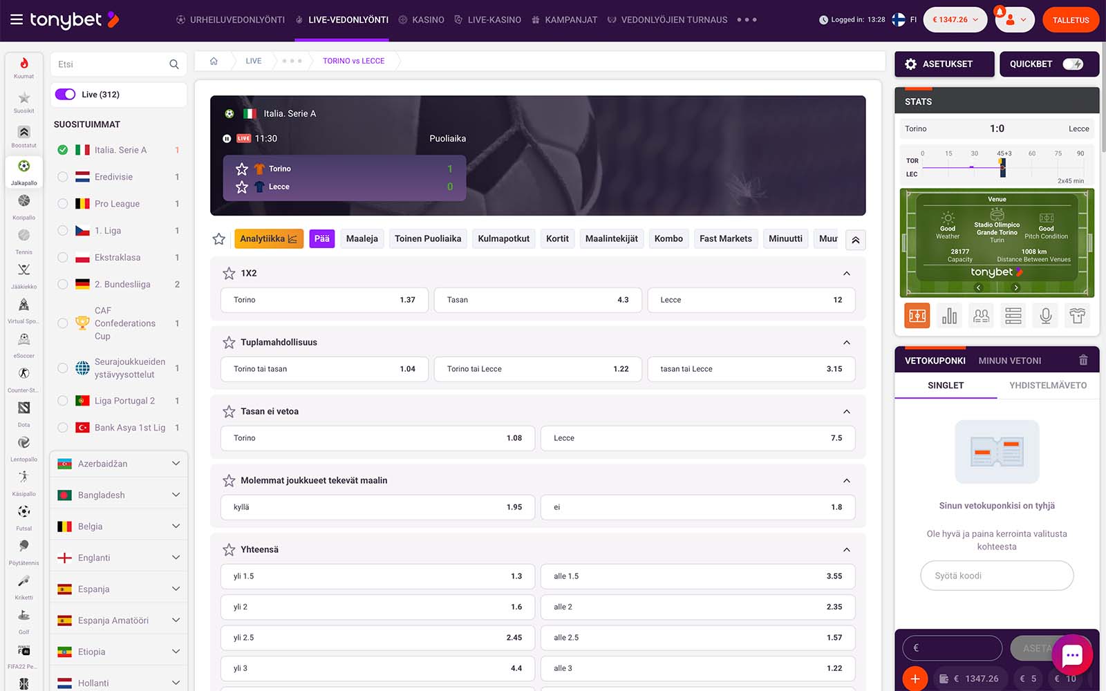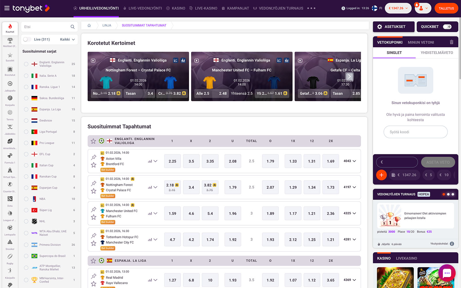 Vaikka 25x kierrätys kuulostaa ankaralta, rakenne on selkeä ja ennakoitava, eikä bonus lukitse pelaajan varoja samalla tavalla kuin perinteiset talletusbonukset. Käytännössä malli sopii parhaiten aktiiviselle vedonlyöjälle, joka pystyy kierrättämään panoksia suunnitelmallisesti.